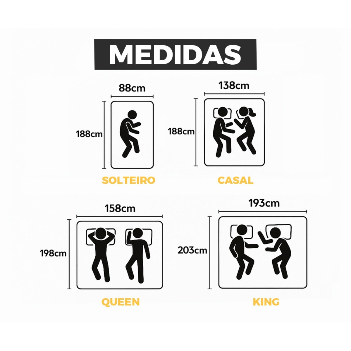 Do Solteiro ao King, nossos colchões oferecem conforto proporcional ao espaço que você precisa. Escolha a medida ideal e garanta noites de sono mais amplas, leves e confortáveis.